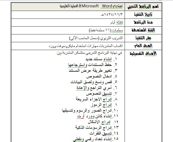 التدريب التربوي والابتعاث للبنات بالرس وصف دورة استخدام مايكروسوفت وورد في العملية التعليمة