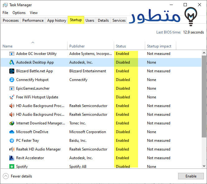 كيفية ايقاف برامج بدء التشغيل Startup تسريع ويندوز 10