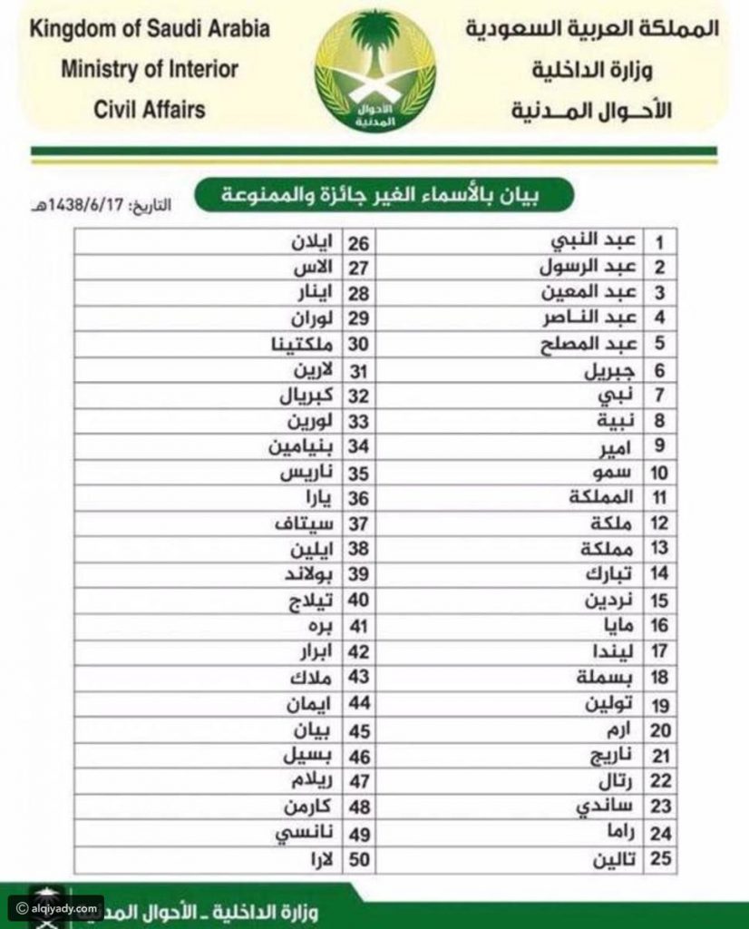ما الأسماء الممنوعة في السعودية بوابة أفريقيا الإخبارية