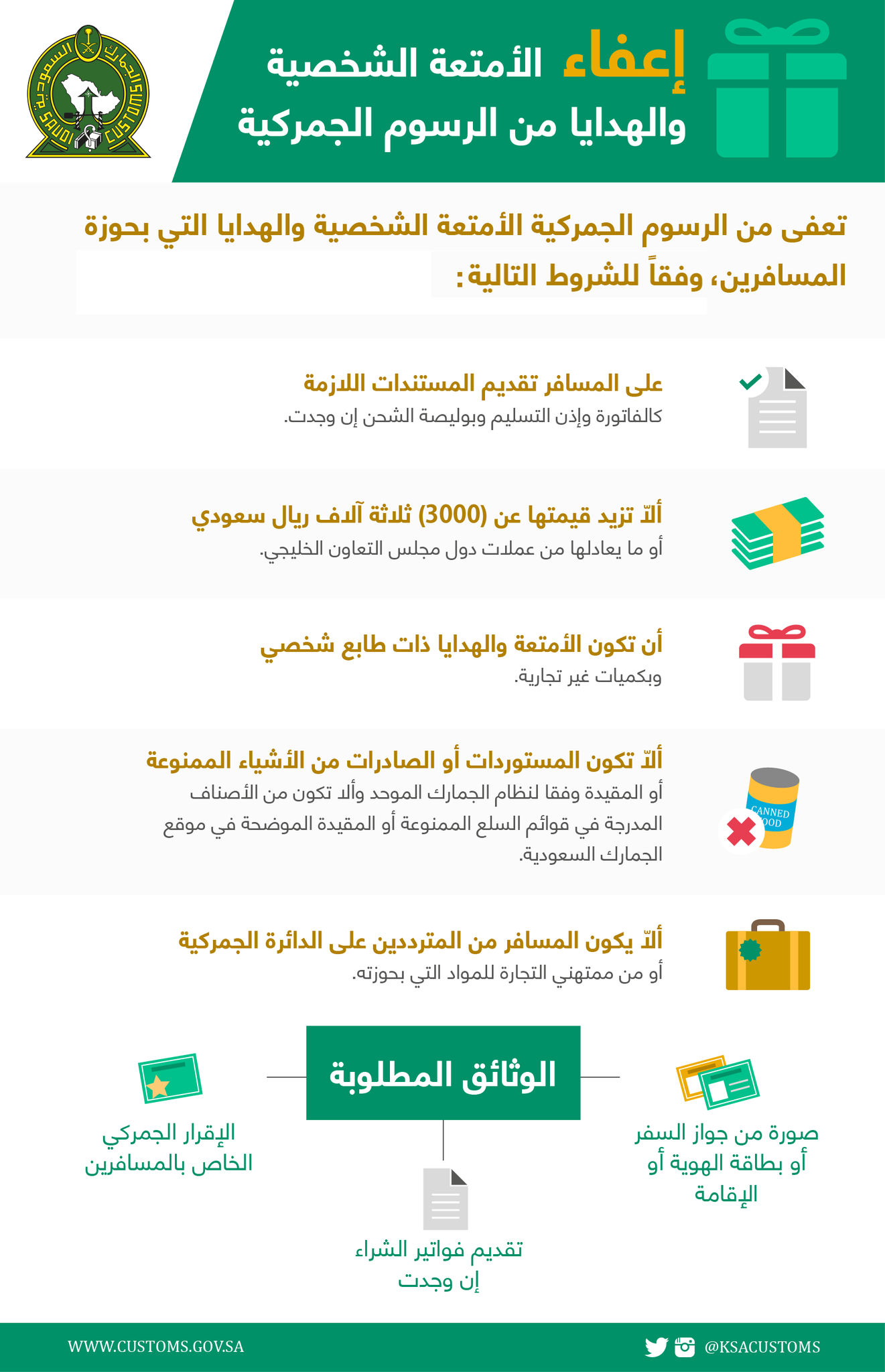 إشعارات الهدي معدة للاستعمال. 70 00 07 49. 20 00 09 49. الاشياء الممنوعة والمعفاة في الجمارك السعودية عبر موقع محتوى تحدد كل دولة في العالم مجموعة من السلع والأدوات التي يحظر إدخالها للبلاد عن طريق الجمارك أو السفن أو المطارات ولابد على كل مسافر معرفة هذه المواد.
