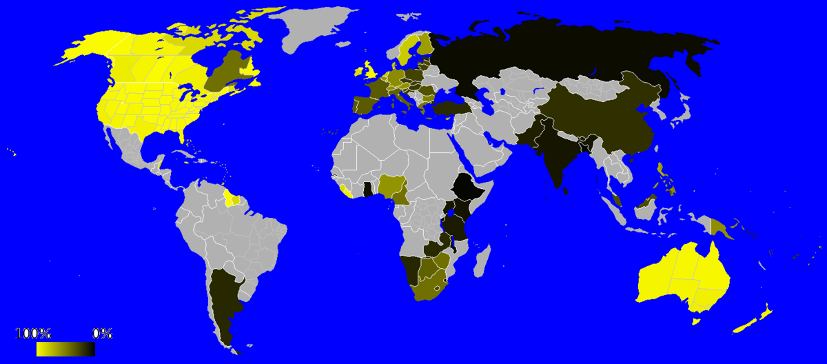 خريطة أكثر اللغات الثانية انتشارا في العالم زحمة