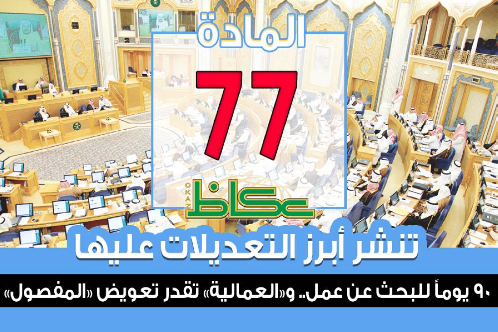 تعديلات المادة 77 من نظام العمل تتضمن دفع تعويض للعامل لا يقل عن راتبه لمدة 3 أشهر 2018 02 04 أرقام شارك انس خ راب ط الم قال. وأوضحت المؤسسة العامة للتأمينات في نشرتها لأصحاب العمل بحسب صحيفة الوطن السعودية أن مبادرة التوثيق الإلكترونية تمكنهم من استبعاد العاملين المشتركين لديهم من خلال 10 أسباب هي انتهاء عقد العمل الفصل بموجب المادة 77 من نظام العمل الاستقالة بموجب المادة 77 من نظام العمل. نص المادة 77 من نظام العمل السعودي 2019 بواسطة. وتنص المادة 77 من نظام العمل والمتعلقة بالتعويض المالي للعامل المفصول لسبب غير مشروع على ما لم يتضمن عقد العمل تعويضا محددا مقابل إنهائه من أحد الطرفين لسبب غير مشروع يستحق الطرف المتضرر من إنهاء العقد تعويضا على النحو التالي 1 أجر 15 يوما عن كل سنة من سنوات خدمة العامل.